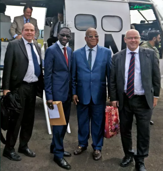 Clément Mubiayi Nkashama, directeur général de la Regideso, Alain Rémy, ambassadeur de France en RDC, et Claude Nyamugabo Bazibuhe, Gouverneur de la province du Sud-Kivu.